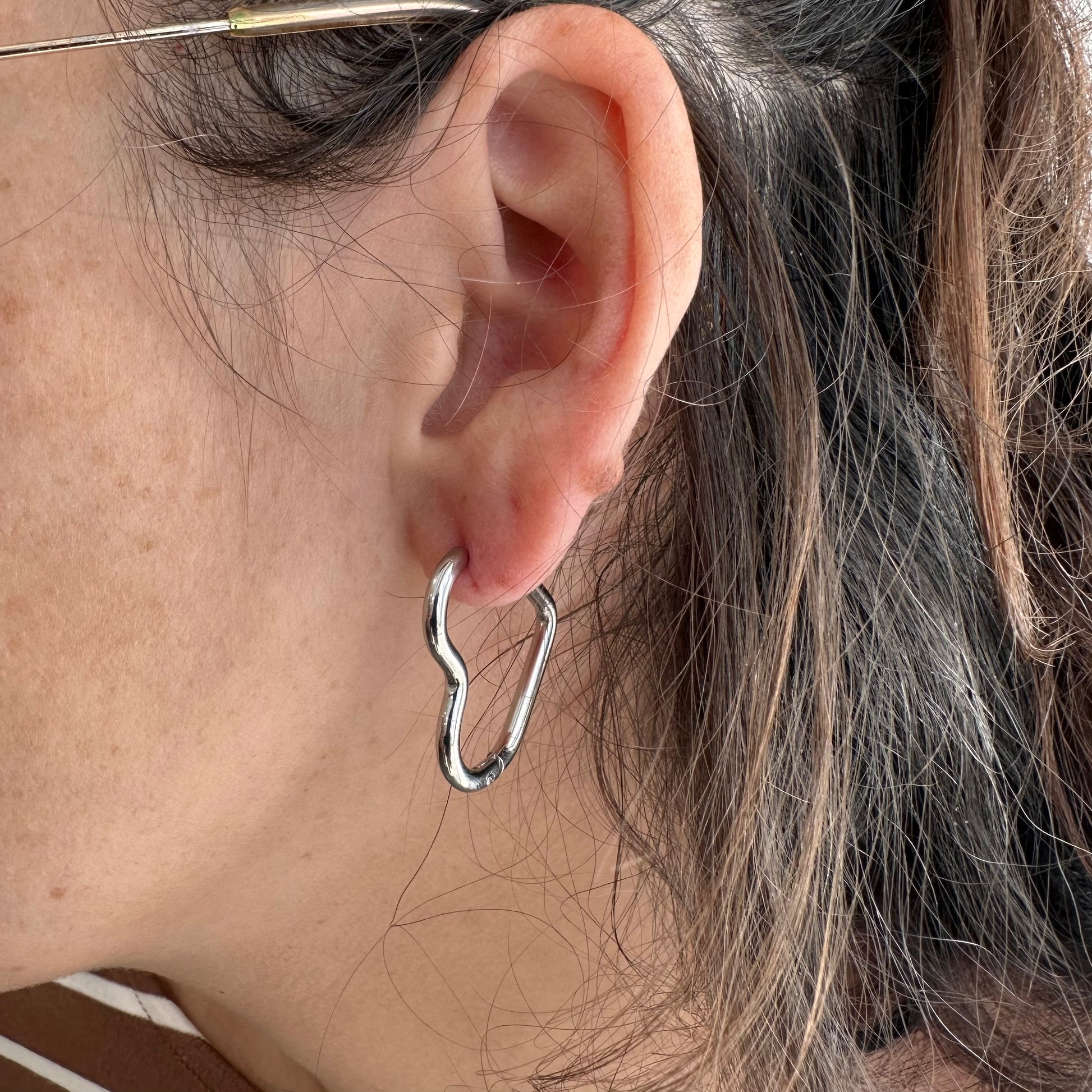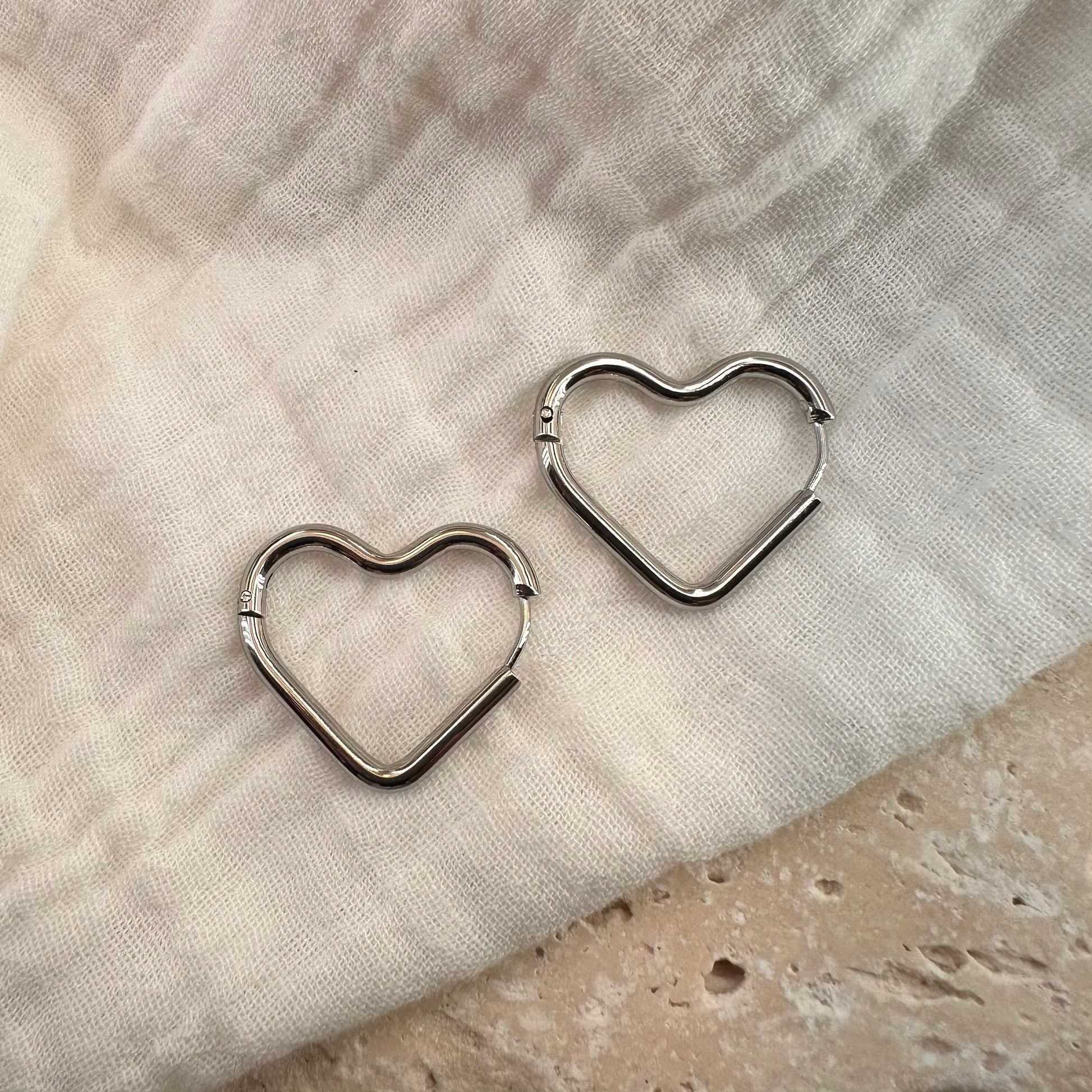 Créoles en forme de coeur argentées.